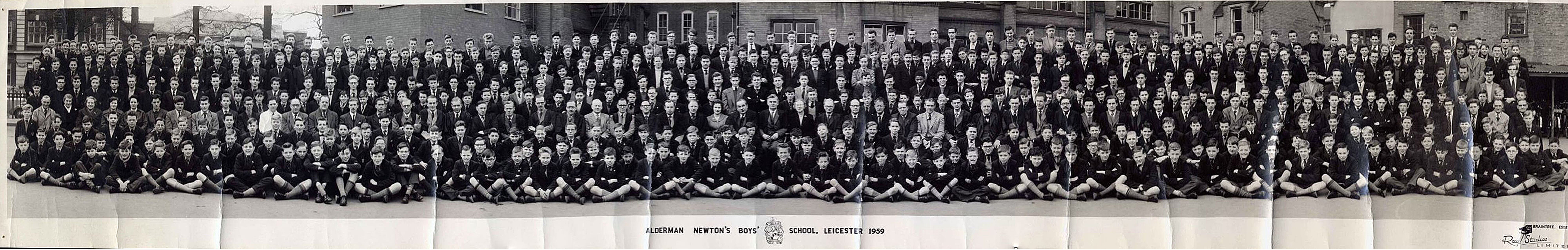 Page extras Below is a series of photographs which involved Brenda and me at school. The first three were taken at Mantle Road Infants School, Leicester. The first (which includes yours truly) was also probably taken when I was in the final year at Mantle Road school. The insignia the two girls are holding suggests the year to be 1953. We are also grateful for father's diligence in documenting the pupils in the third of these. Next comes a group from Inglehurst Junior School (which Brenda and I always knew as Ingle Street). We have a partial key to several of these pictures. Any help with further identification would be gratefully received. Last comes one of the panoramic views of Alderman Newton's Boys School - no attempt at identifications here! You can scroll and zoom by using the buttons on the right. ADC